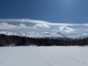前の夜に降った雪で新雪が積もり、次の日は嘘のような晴天に恵まれ山もくっきり見え、季節外れの流氷もしっかり拝めるという、絵に描いたような条件に恵まれて非常に運が良かったなと思いました。(今年の冬は晴天日が少なかったと聞きました。)多分しばらくこんな運に恵まれることはないだろうなと思いながら、1湖でぼーっと考えていました。 ツアーはスノーシュー(かんじき)を履き、ガイドの方がスノーシューを履いていると
