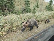 親子のヒグマ出没中!ヒグマとの距離 2m