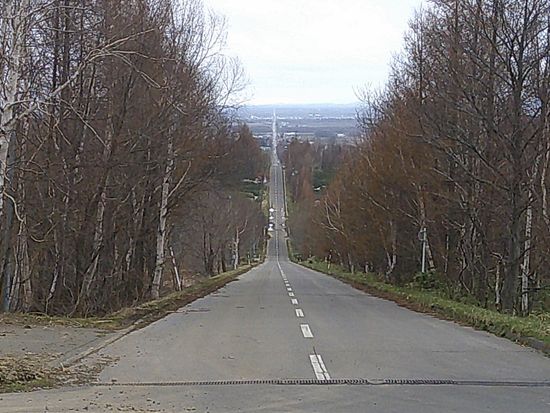 国道334・244号線の全長約18kmの直線道路。まっすぐな道がはるか遠くまで続き、その先が天まで続いているように見えることからこの愛称がつけられました。バイカーや自転車ツーリングの旅行者にも高い人気を誇る絶景ルートです。