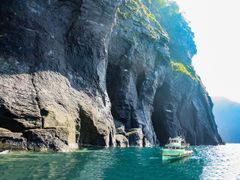 知床ウトロ港を出発し、海に流れ落ちる滝、流氷や波に削られた奇岩を眺めながらルシャ湾を目指します。壮大な知床の自然に包まれ、爽快にオホーツク海を走ります。