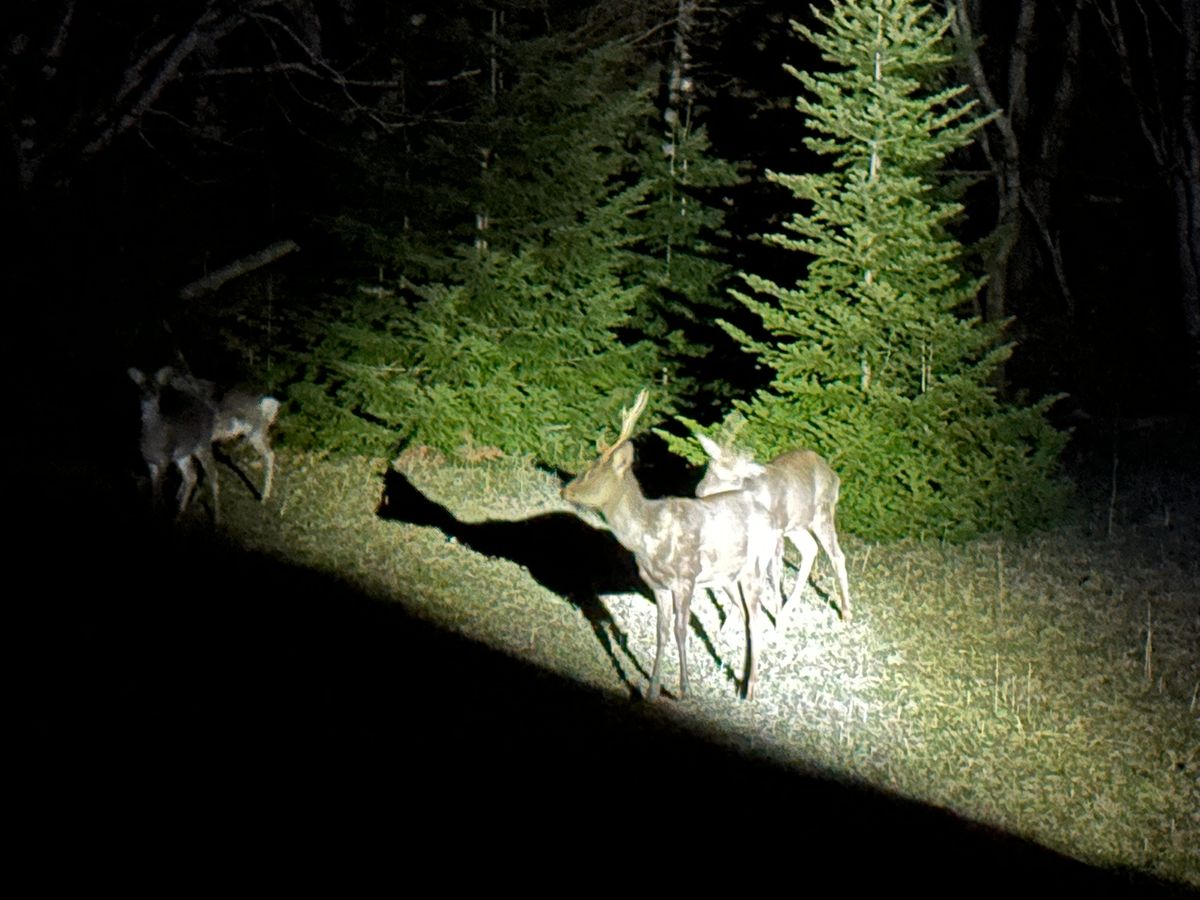 母シカに甘える子鹿、ネズミを咥えて巣に戻ろうとするキツネ、そして念願のシマフクロウ!!