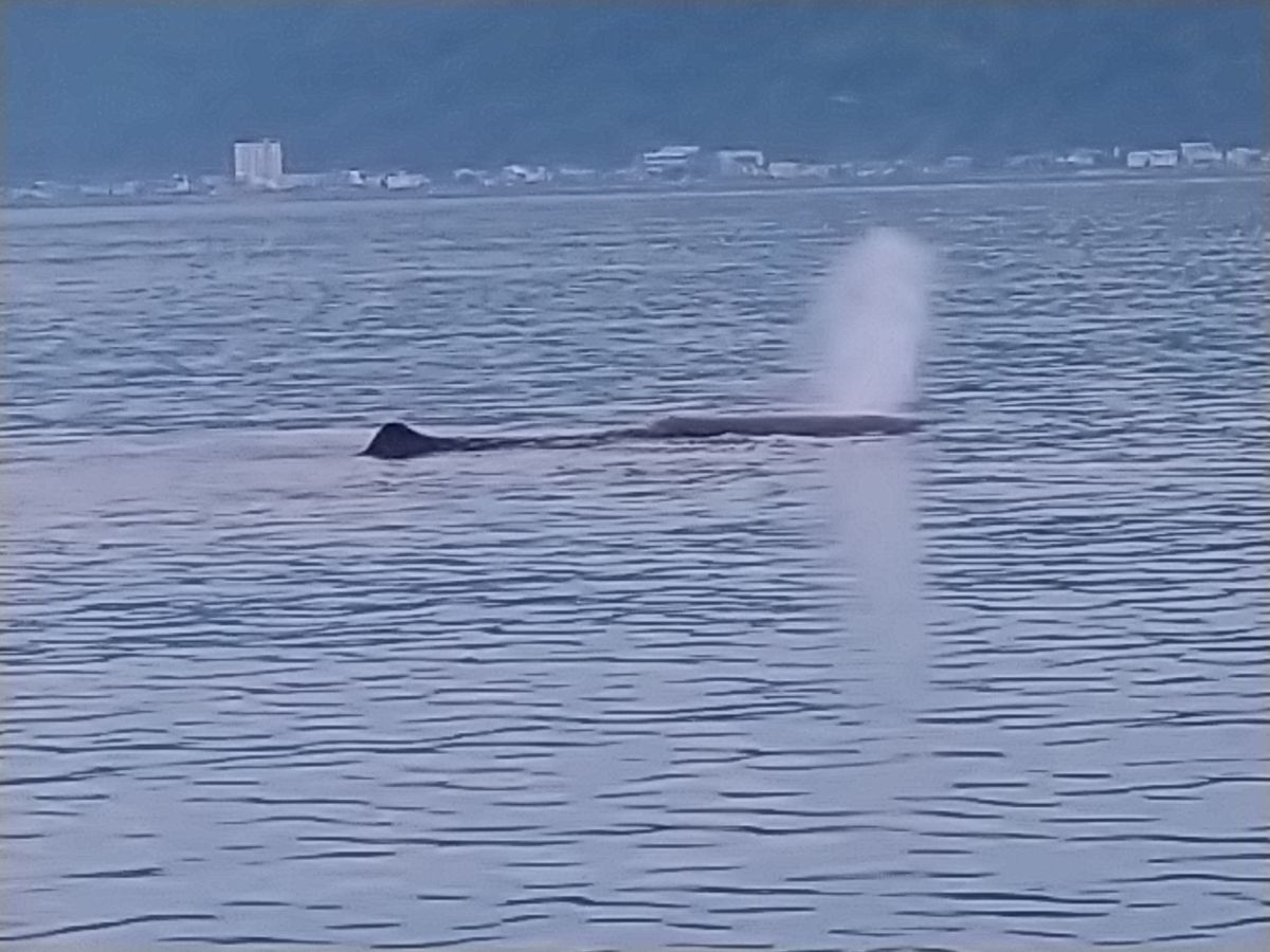 天候は曇り、気温は低めで少し風も吹いており、コンディションはあまり良くありませんでした。しかし、スタッフの方が、2マイル先の遥か遠くでクジラを確認すると、すぐさま現場に直行し、クジラに近づき過ぎないお互い安心な距離から人生初めてのクジラを観る事ができました。潮吹きの様子や潜っていく際の大きな尾鰭を水面から上げる様子は圧巻でした。素晴らしい体験ができて本当に良かったです。