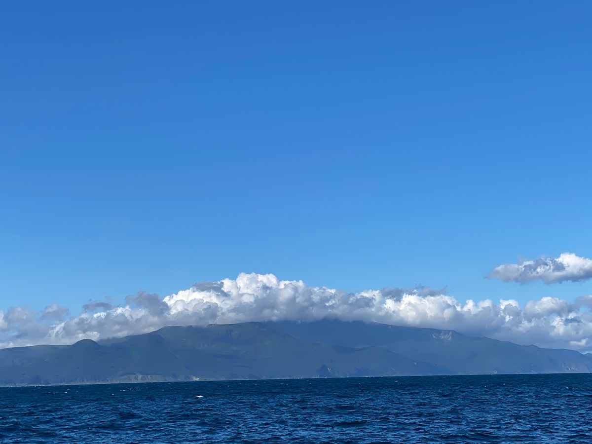 海を30分以上進み、右手に国後島を見ながらポイントに到着するもクジラの気配はなく。