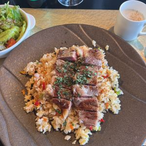 ビーフステーキピラフはとても美味しかったです、ただソフトドリンク450円は氷の量が多かった
