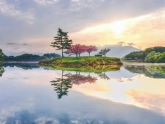 日野川ダムに浮かぶ小島に咲く「浮島の八重桜」を見学。湖面に映る八重桜が幻想的な景観を生み出し、近年注目を集める絶景スポットです。写真撮影にも最適で、春ならではの特別な風景を満喫できます。
