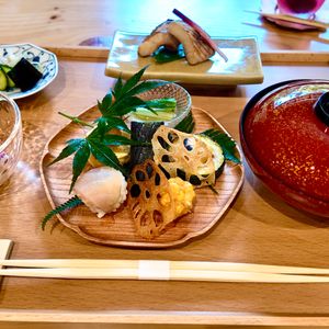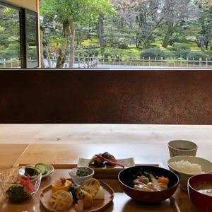 加賀棒茶のお粥を兼六園を眺めながら食べるのは、最高に贅沢な時間でした。どの料理も美味しくて、盛り付けも綺麗で大満足でした。量もちょうどよかったです。接客していただいた女性のお話も興味深くて楽しくて、気配りも最高で素晴らしいと思いました。隣の方の治部煮も気になりましたので、今度行けたら治部煮の方も食べてみたいです。