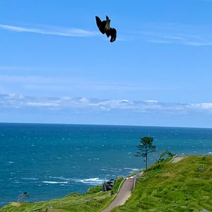 当初は曇りの予報でしたが綺麗に晴れ、風もあったので雲も無く日本海の島影も見られて、海風が爽やかに涼しかったです。