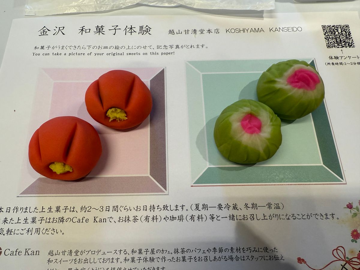 初めて体験しましたが、ここでしかできない体験でとてもよかったです!抹茶付きで申し込みをし、隣のカフェで、自分で作った和菓子と一緒にいただきました!甘さもちょうど良くとっても美味しかったです。おすすめの体験です!