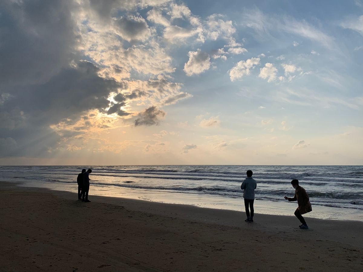 15:00 に金沢市内を出発。直前まで高潮による通行規制が続いていましたが、現地に行ってみると一部が解除されており、念願の砂浜ドライブが叶いました。車を降り砂浜を散策したり貝拾いをしたりするうちに日が暮れ始め、日本海に沈む真っ赤な夕陽は圧巻の一言でした。乗務員さんも細やかに対応してくださり、一生の思い出となる素晴らしいツアーでした。