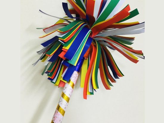 青柏祭の曳山行事で欠かせないまつり道具「ざい」を作る体験
