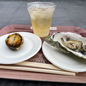写真のお昼は"道の駅 遠野風の丘"で頂いたのですが、他の人の投稿で「色々みたかった」とあったので、最悪、お昼抜きでも良いから全体を見ようと思って回ったら、一番端の方にアワビと牡蠣を焼いて提供してくれるお店がありました。もう、これしかない、と思い、すぐ注文!