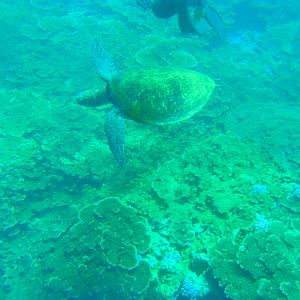 台風が近づきやや流れが強かったですが、ガイドさんが引いてくださる浮き輪につかまって休憩もさせていただきながらのシュノーケリングでした。念願のウミガメに出会うことができ大興奮!!!水中でのお写真のデータもいただけてとても嬉しかったです!