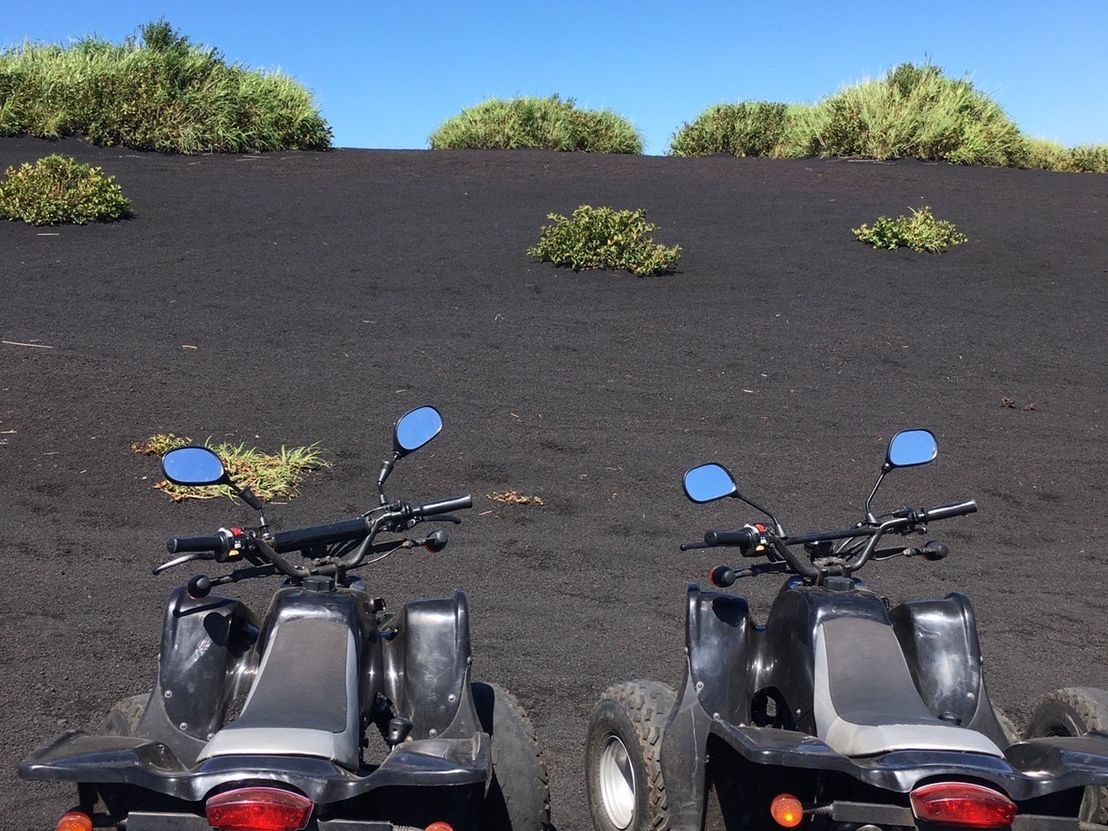 ブレーキの掛け方は自転車に似ているので、運転免許証を持っていて自転車に乗れる方ならば大丈夫です!裏砂漠でタイヤがハマると砂が巻き上がるので、マスクやサングラスはあったほうがいいです。そして、女性はスカートやワイドパンツのような裾が巻き込まれる恐れがある服装は避けた方が安心して体験できます。