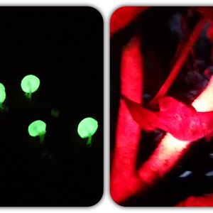 時期的にグリーンペペが残念ながら見えなかったのですが、菌糸が光っている様子を見せるために一生懸命探してくれました。おかげで、光る様子をみることができたのでよかったです!