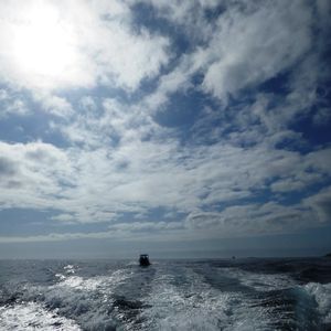 ボートは1日と半日の混載ツアーでしたので、12時に私たちを下ろし午後からのお客さんを乗せて、午後は兄島の方に一緒に泳ぐことができるミナミハンドウイルカを求めて出発されて行きました。