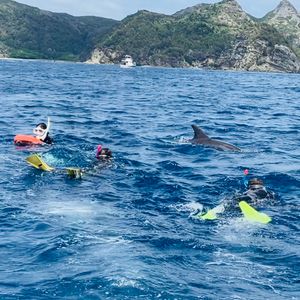 シュノーケリングーケリングの練習の後、すぐにイルカとの遊泳を楽しめました。しかも1日で計7回も。手の届く距離でイルカと遊泳した際は思わず手を伸ばしてしまいそうに。また、底の見えない深い海で真下にマダラトビエイを見ながらのシュノーケリングは忘れられない経験になりました。南島を満喫したり、洋上からみるハートロック、美しい海岸線やビーチの数々父島を漫喫できるお得なツアーで是非お勧めします。
