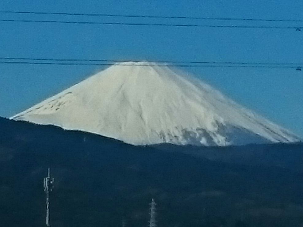 ロマンスカーの右側の窓から冠雪した富士山が見えた。