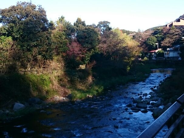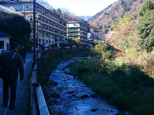 箱根湯本の駅から風情ある川沿いを歩き、施設に到着。