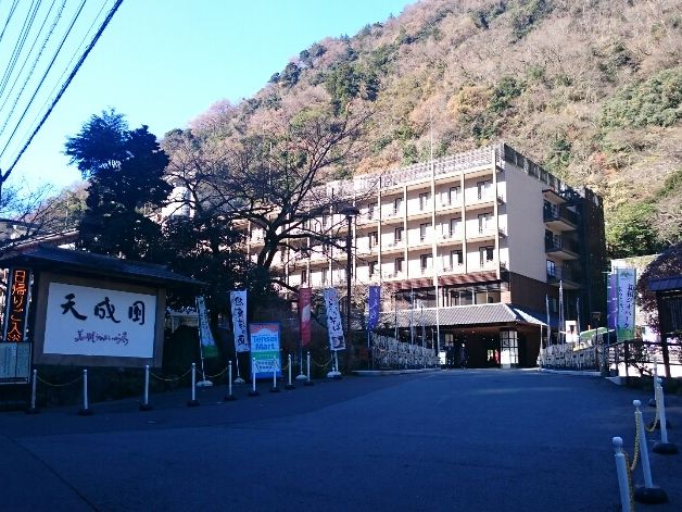 箱根湯本駅から箱根湯寮までは送迎バスもありますが、酔った勢いでキツイ坂道を登ることになりました。軽く汗ばんだ頃に到着!