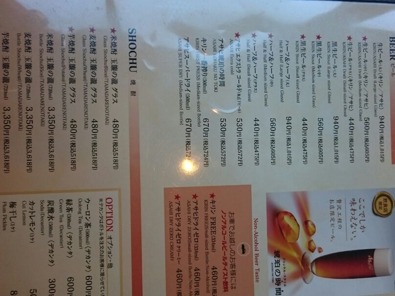 付いている食事は2,200円相当のものだったようで、別料金でビールを1杯ずつ。