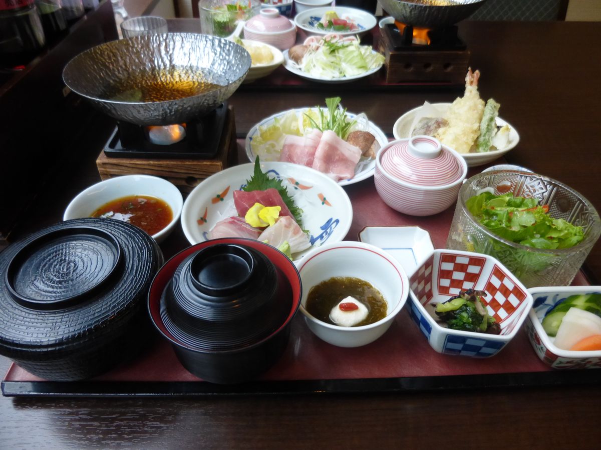 その後、かなり豪華なお昼。熱いものは熱いまま提供されます。湯上りのビールと豪華なお食事最高でした。