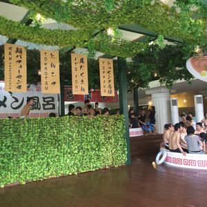 風呂のイベントも楽しむことができました!コーヒー風呂では新鮮な(温かい)コーヒーが注がれ、ワイン風呂では赤ワインがかけられ、特別な期間限定のラーメン風呂では、麺の形をした入浴剤が加えられました。すべての風呂は単なる入浴剤なので、体に害はありません。