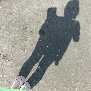 It was a sun-blessed, breezy day on the sandy beach, and so comfortable while I stretched my body and looked at the sea, arms extended.