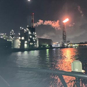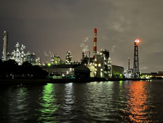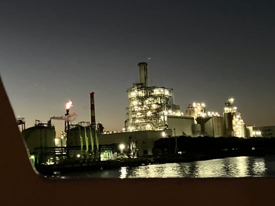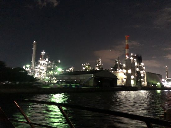 旅行で、はじめての工場地帯クルージング。
