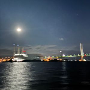 出航時はまだ日が沈む前だったので、普段陸からは見られないところも色々見られて、だんだん暗くなってくる頃に工場夜景のポイントに到着。帰り道は大黒ふ頭の花火も見られ、またクルーズ中は満月に照らされている海もとても綺麗で感動しました。ガイドさんもとても分かりやすく、色々教えて頂き大満足です☆