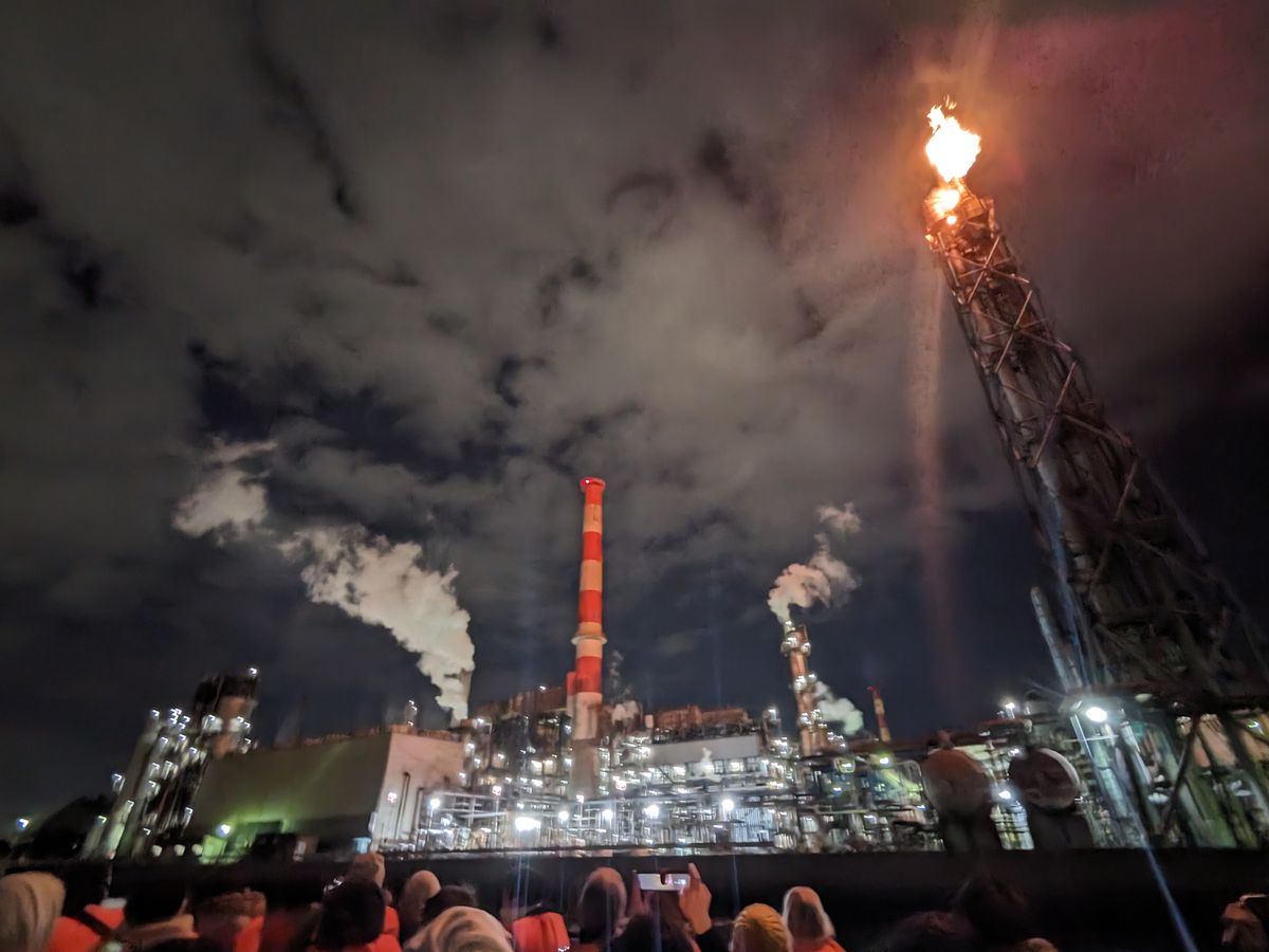 12月の肌寒い澄んだ空気が、街の工場の照明群を引き立たせる絶好のクルーズを楽しめました
