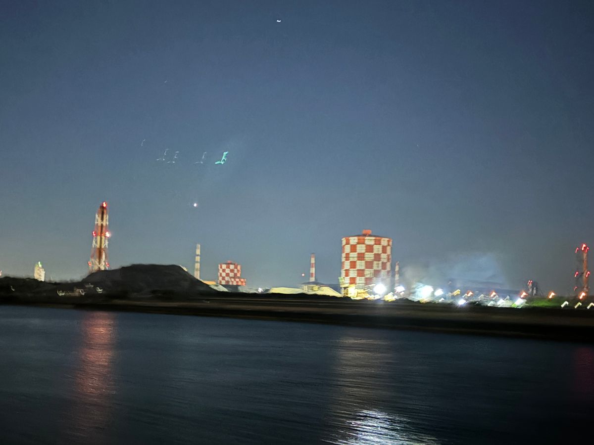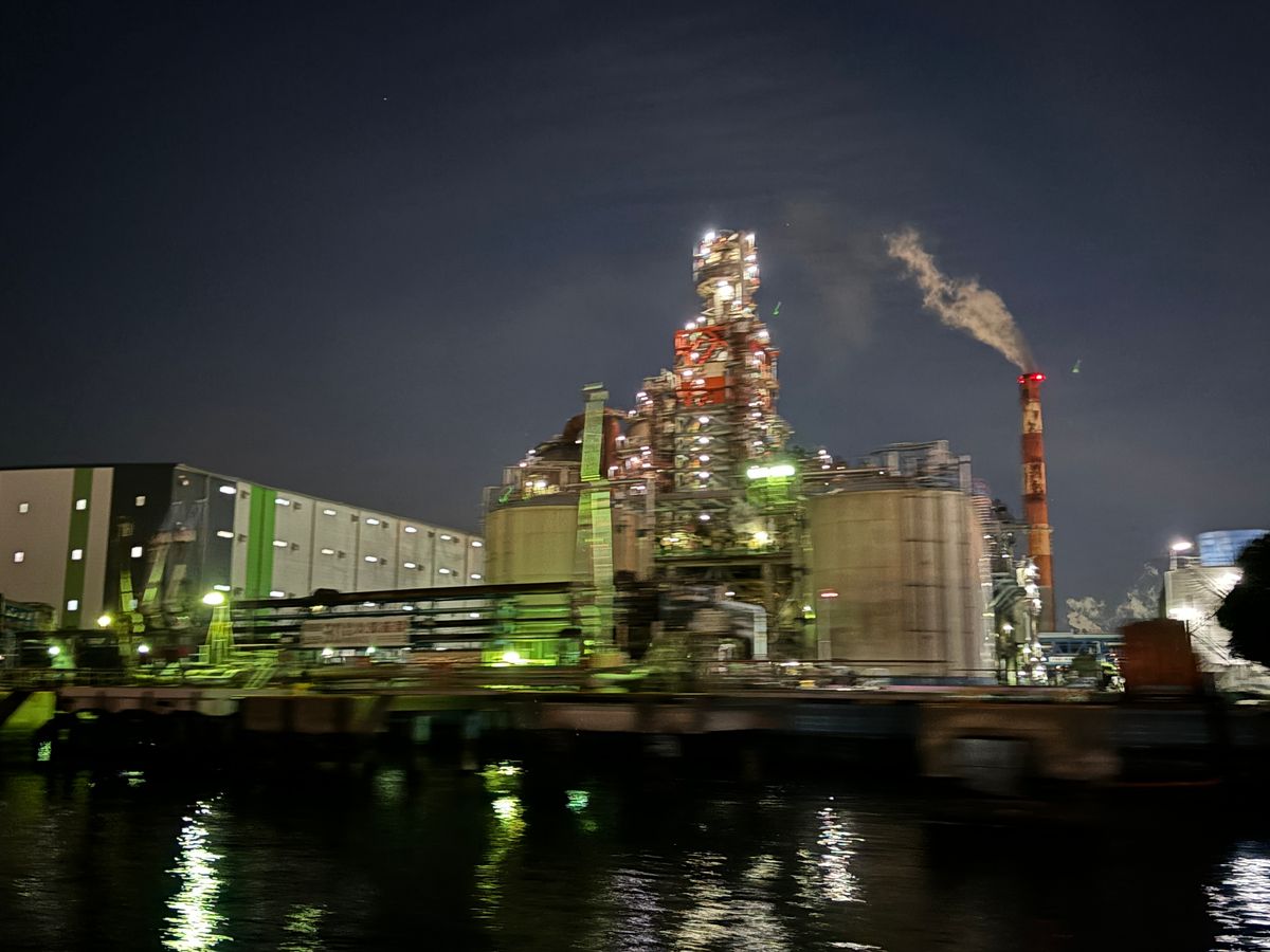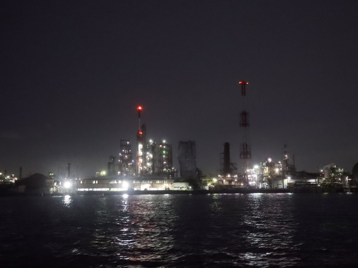 海から見る工場夜景はとても綺麗でした。
