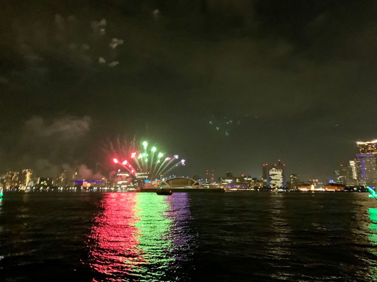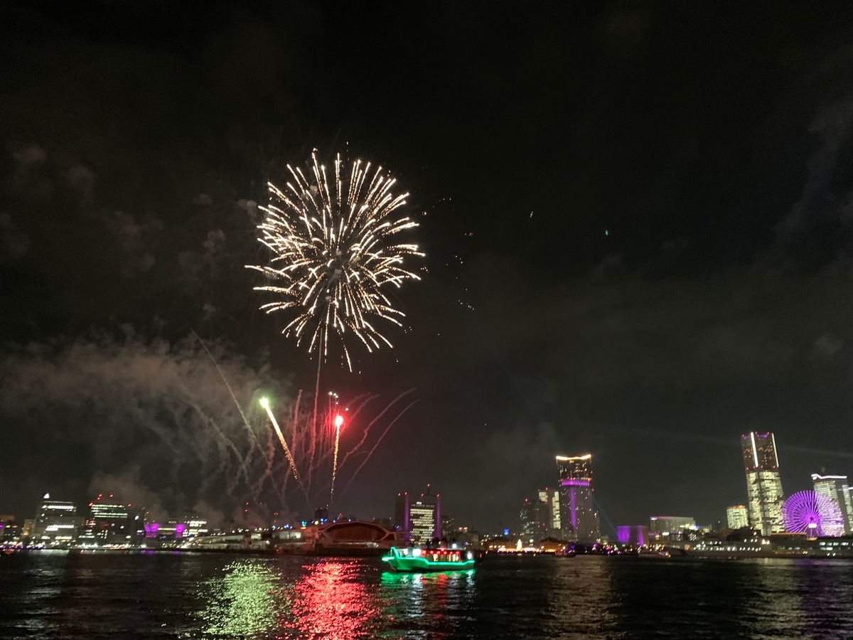 前日はすごく寒かったのに、この日は寒さも和らぎ、船のデッキから気持ちよく花火が見れました。