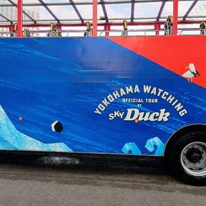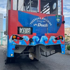 背の高いスカイダックに乗車して、いつもの景色とは違う横浜観光。