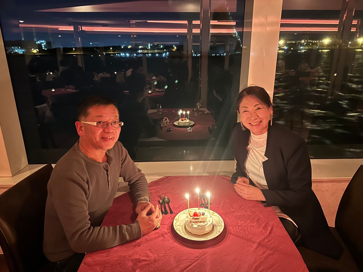 誕生日会をするためにディナークルーズを予約。搭乗から夜空にキラキラ光る船にテンションがあがります。天気も良く冬なのでくっきり夜景を楽しめて、シャンパンとコース料理を満喫!全客席が埋まってなくてうまくプライベート空間が保たれているのがよかった。有料で誕生日ケーキを用意してくれたので良い記念になりました。生演奏とかあればもっと最高かも!