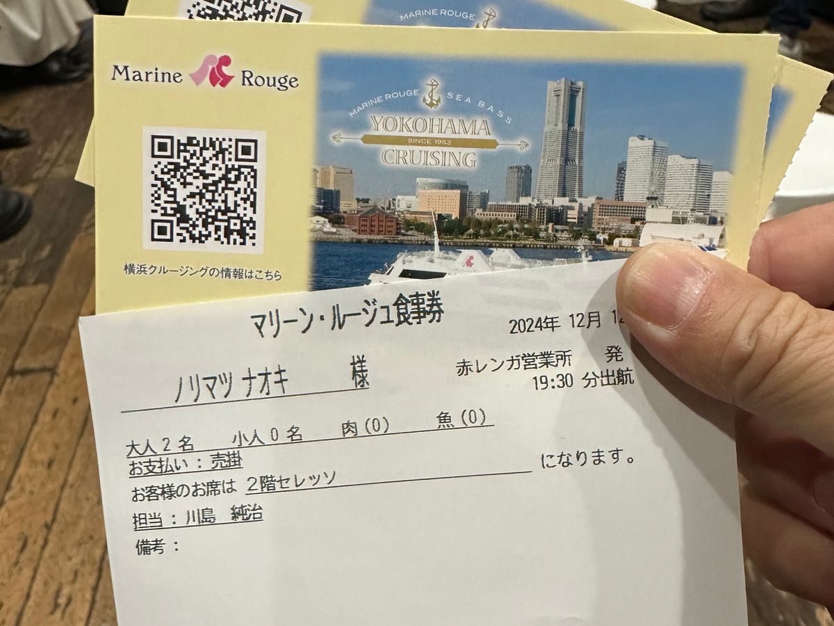 今回、仲の良い友人グループで憧れのディナークルーズを体験させて頂きました。天候にも恵まれ想像以上の素晴らしいディナークルーズでした。みなとみらいの夜景を海上から眺めると海にも夜景が反射して、後半のコースでは観覧車近くまでマリーンルージュ号が寄ってくれるので、圧倒的な光の迫力に魅了されまくり流れてくるサザンオールスターズの曲に興奮しまくり、一生忘れる事のない思い出になりました。