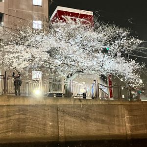 両サイドの桜がライトアップされていて、ほぼ満開でとても綺麗でした。