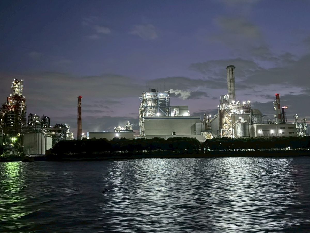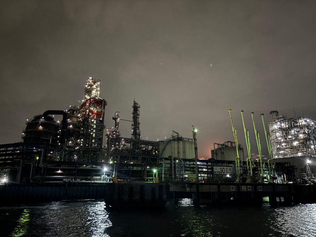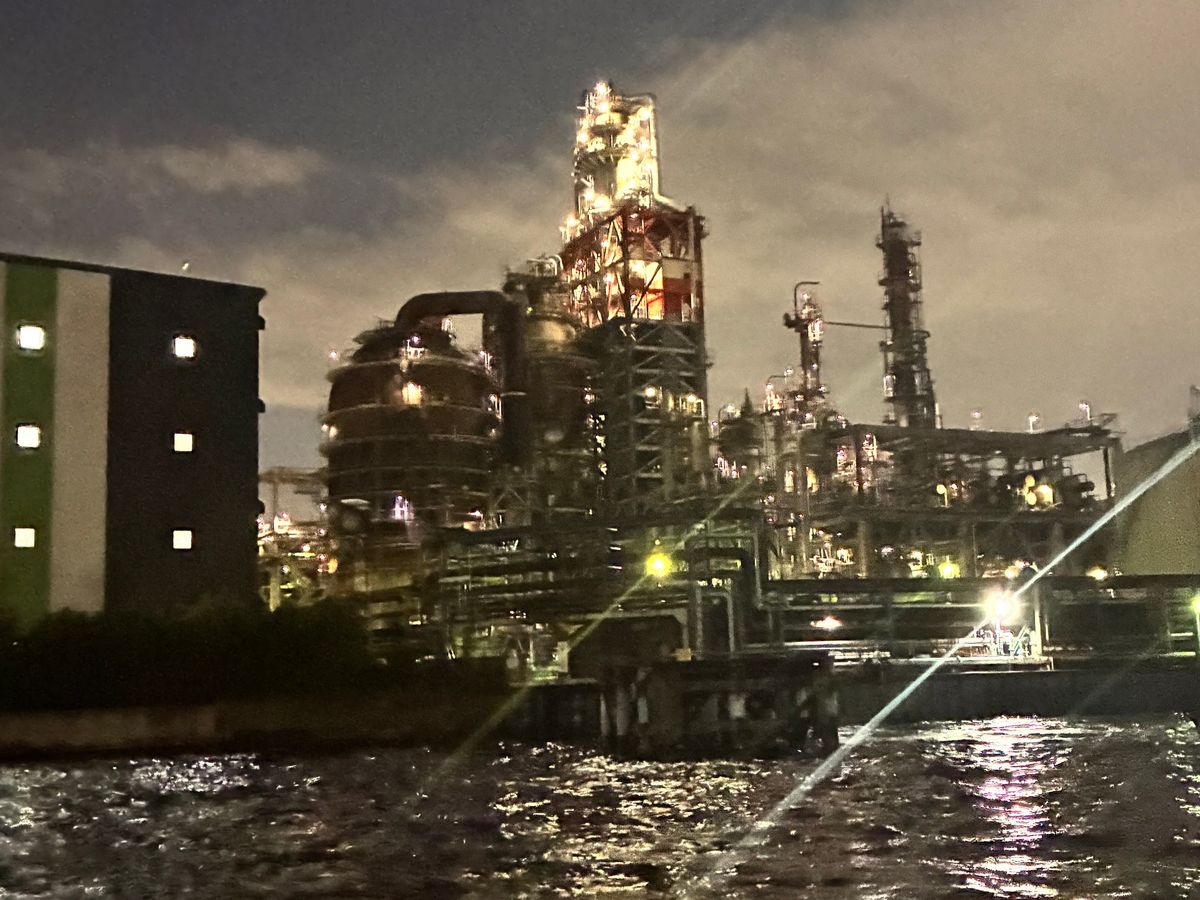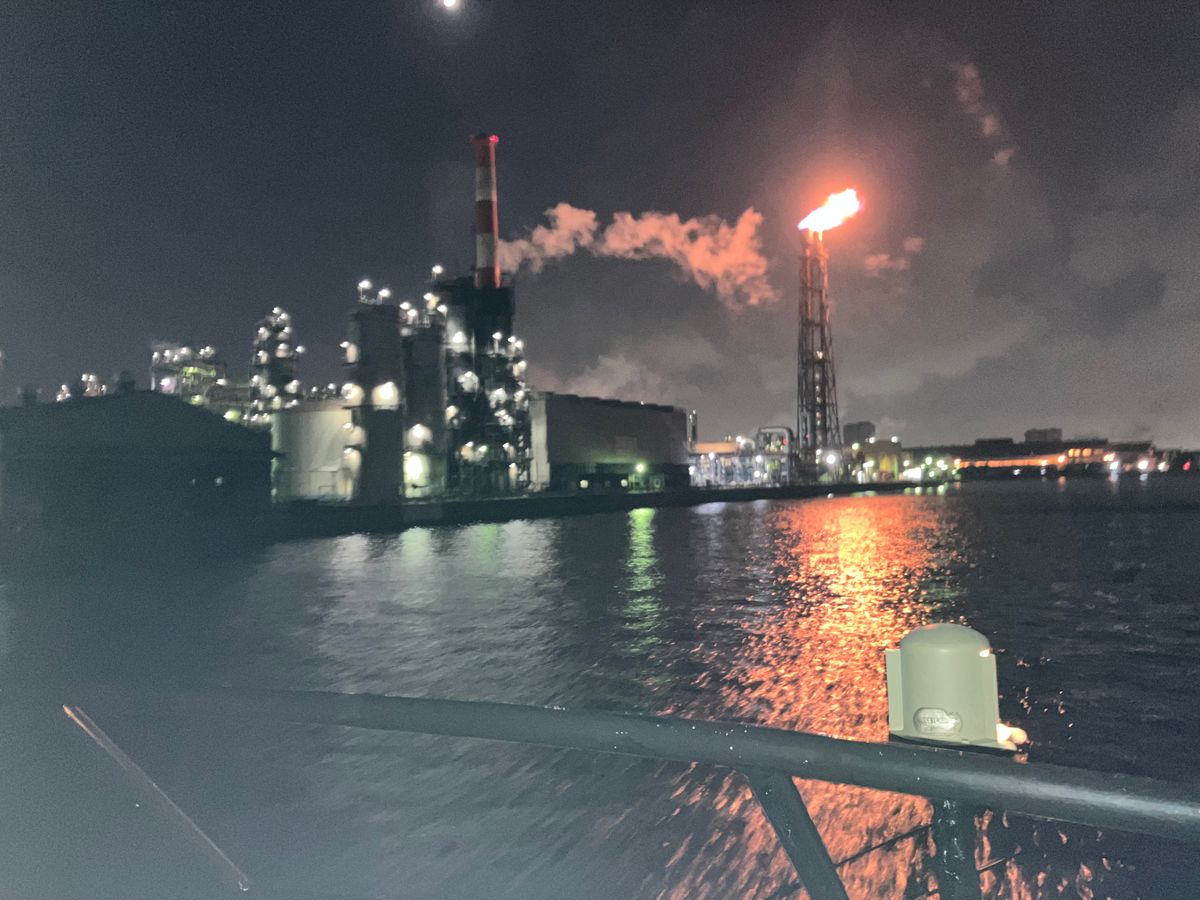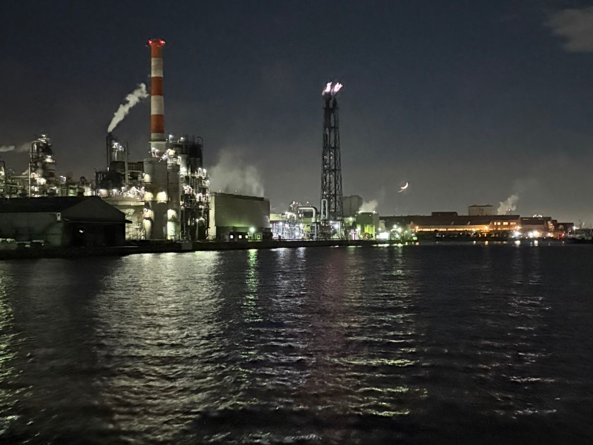 旅行で、はじめての工場地帯クルージング。