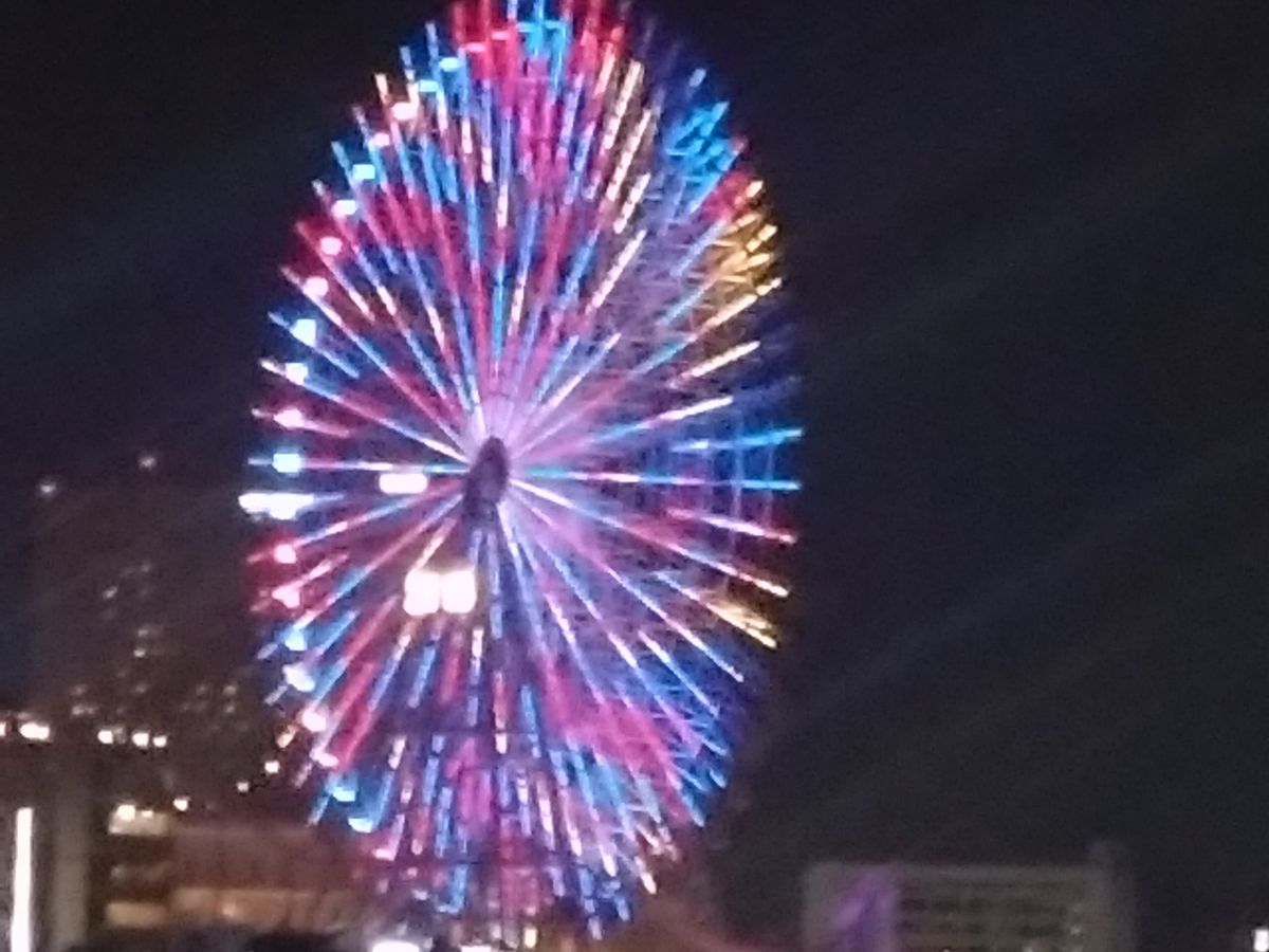 みなとみらいの夕焼けとライトアップの両方が見られました。
