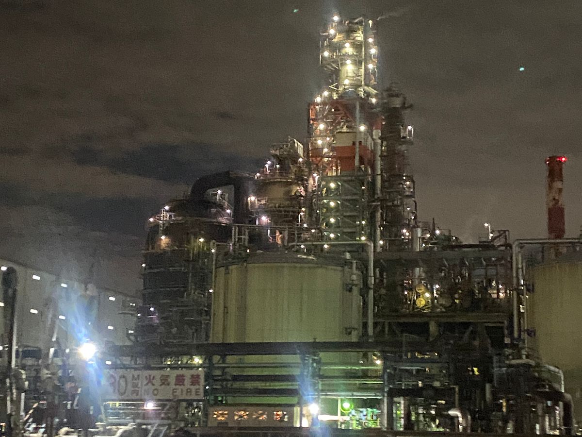 工場地帯に入っていくと、まるでSF映画のワンシーンのような幻想的な美しさがありました。