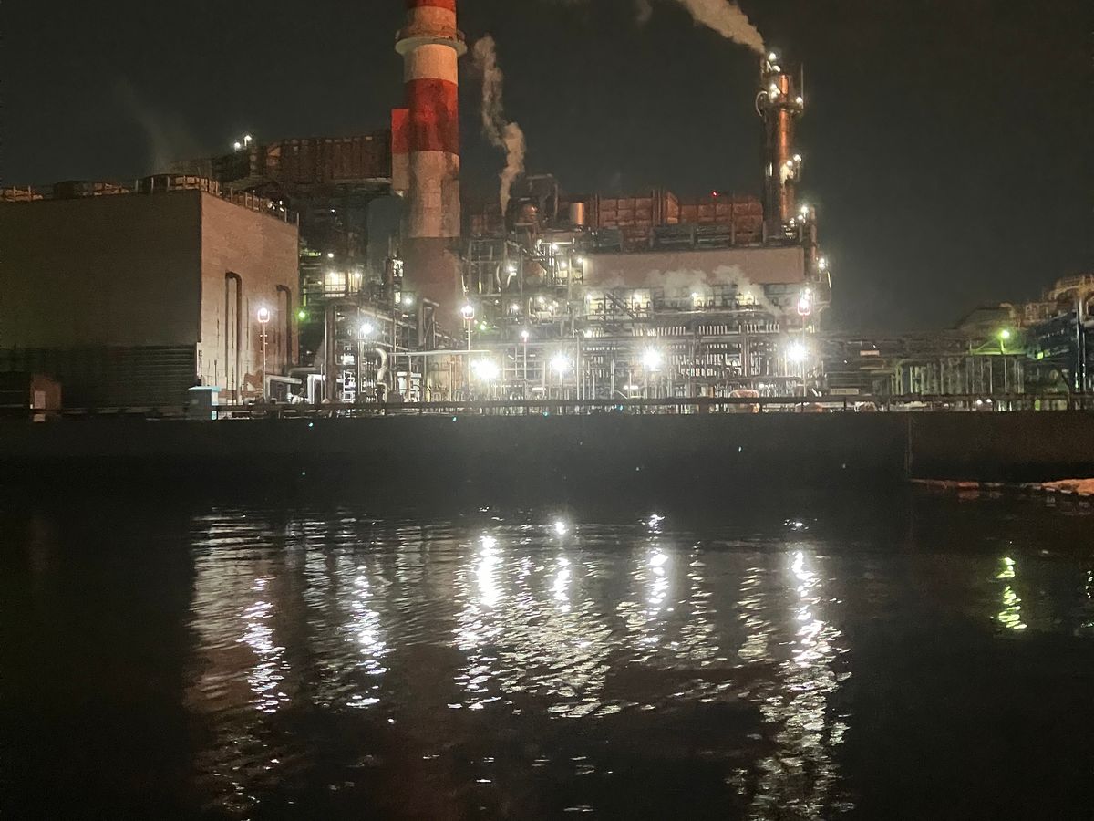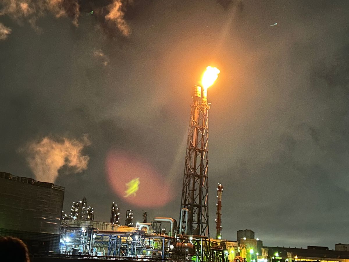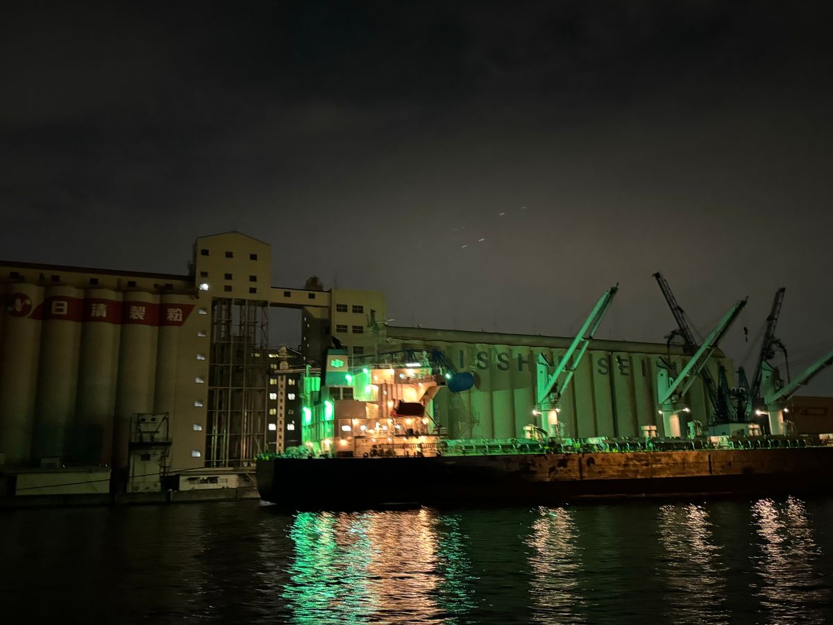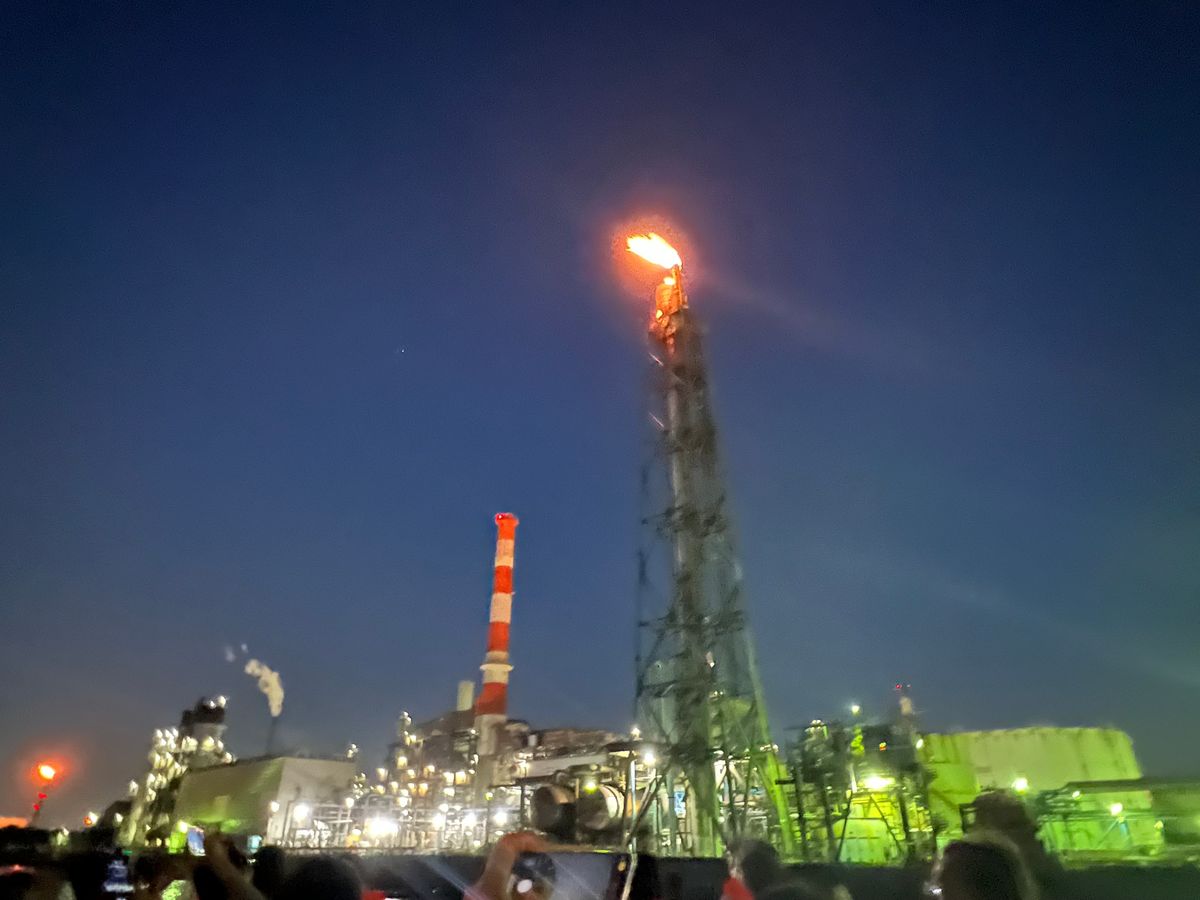 海から見る工場夜景はとても綺麗でした。