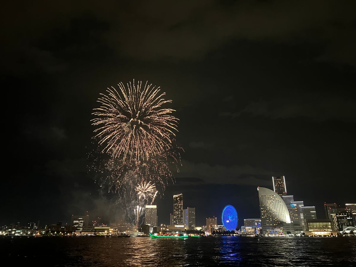 花火を鑑賞する為に集合場所が変更となり、幾度かご連絡を頂きました。場所を見つけるのに少し迷いましたが、花火と多方面の景色を楽しむことができて、ラッキーでした。ベテランのガイドさんの説明もわかりやすく、横浜を堪能することができました!