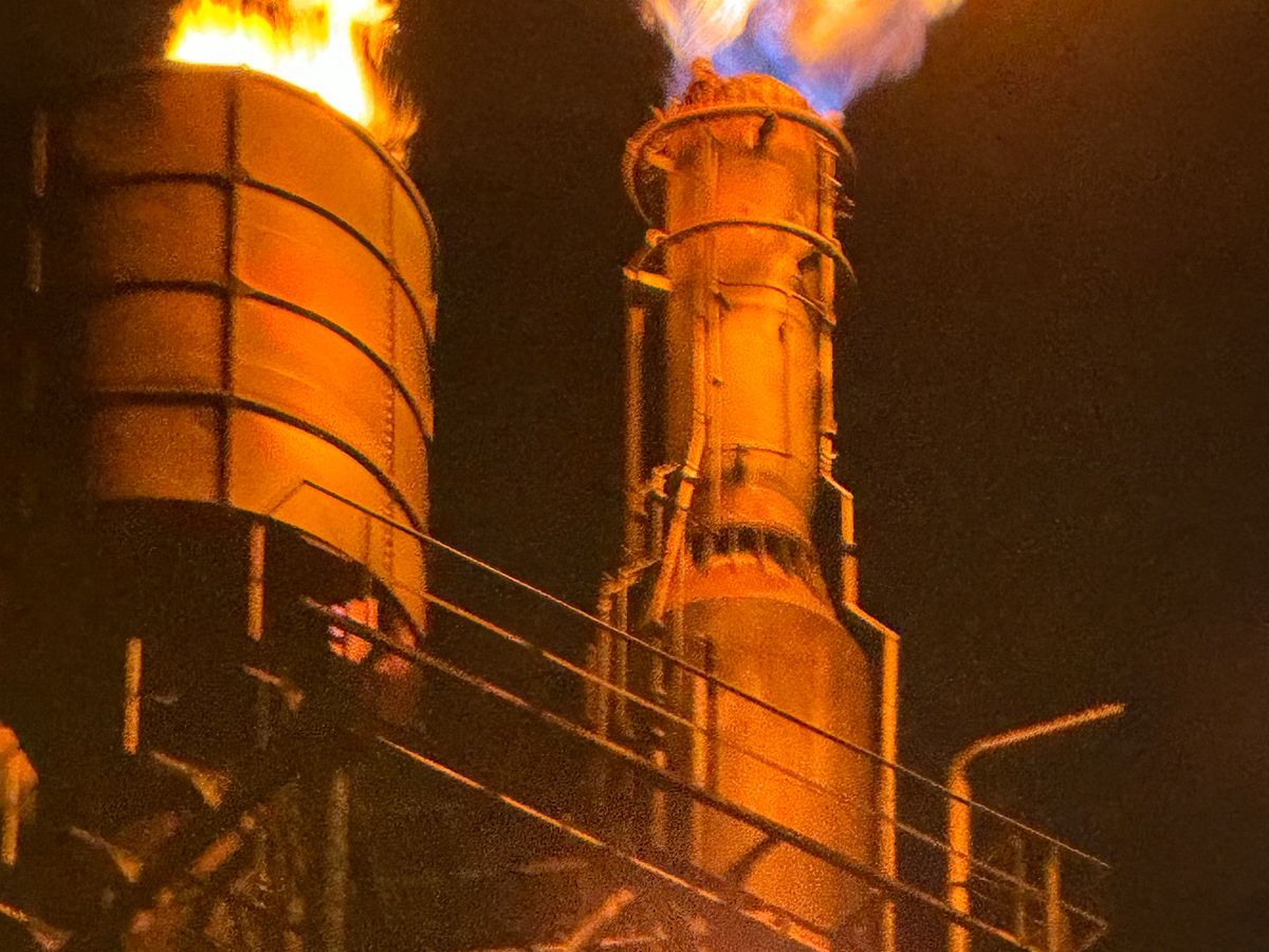 工場の炎は、暑さを感じる位に近く大迫力でした