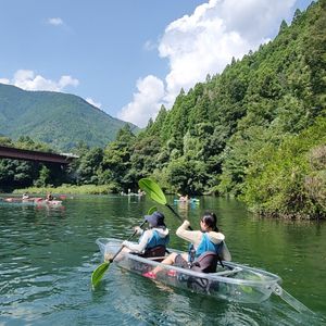 雨の中での体験。せっかくのクリスタルカヤックだったのですが水の透き通りはあまり見えず残念でした。しかし、4人でいったのですが途中で乗る相手を交代させて頂いたり、水の掛け合いをしたり自由に遊んで良かったり他の参加者の方とも仲良くなりすごく楽しくてずっとハイテンションでした😊ガイドさんのそうくんとかいせいくんも、元気で優しくてたくさんお話ししてくださったり高知の有名所も教えて下さり楽しく過ごせました。楽しい時間でした。ありがとうございました。また次は、サップもしてみたいです!