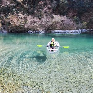 流れもほとんどないので子供から年配の方まで幅広く楽しめると思います。透明なカヤックなので、川の透明度もよくわかり、お魚が泳いでいる様子も見えて楽しかったです。