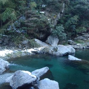 お天気も味方して、お昼前着いた安居渓谷の荒男谷や乙女河原(時間的に余裕があり、足を伸ばしてくださいました!)は、陽差しが当たり、きれいな仁淀グリーンに出会えました。ドライバーさんはもっと青い仁淀を見せたかったと何度もおっしゃってましたが…