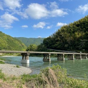 名越屋沈下橋を堪能してから、今回の目的であったにこ渕へ、道路からにこ渕へ降りていきましたが、混雑していましたが、写真撮影や動画撮影を、楽しめました。にこ渕が混雑していたので中津渓谷は、スルーして浅尾沈下橋へ、突出しがないTHE沈下橋と言う感じで、楽しめました。