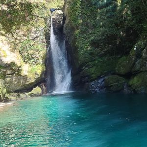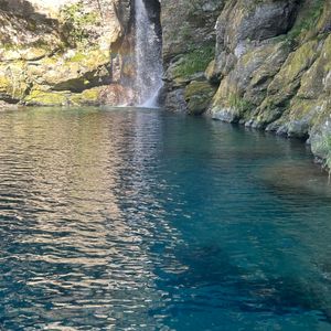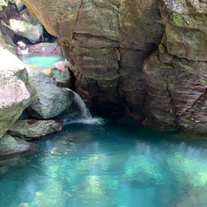 前日の雨の影響で、残念ながらブルーな景色は見られませんでしたが、渓谷はとても気持ちよく、かわりに爆音で迫力ある滝を見ることができました。