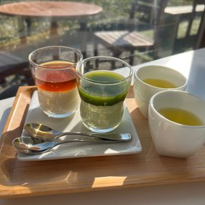途中ドライバーさんおすすめの、川が見えるお茶屋さんに寄っていただき、プリンとソフトクリームを食べました。