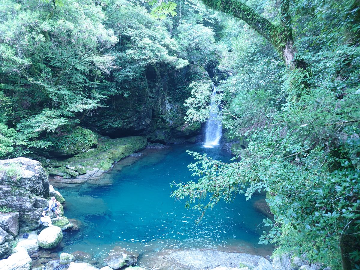 高知初めての、我ら68才と66才の夫婦旅。 旅先では夫がレンタカーを運転してくれることが多いのですが、この度は不慣れすぎる土地なので利用させて頂きました。 親切でマナー良く優しいドライバーさんの運転で、先ずは沈下橋へ。透明で綺麗な水に魚の姿も。 この後はいよいよにこ淵へ。階段で降りると聞いていざ向かうと、なんとも急で段差の激しい階段が、、、。上がる時のしんどさがちらっと脳裏に浮かぶも深く降りていくと、濃いエメラルドグリーンの水面が目に入り、一気に心が高揚して吸い寄せられるように、更に降りていきました。 澄んだ水を勢いよく落とす滝とのコントラストに癒やされて、本当に来て良かったと感動しました。