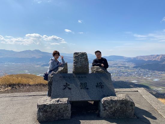 黒川温泉が目的の旅行でしたが、最終日、飛行機の時間までをどう過ごそうかと考えていました。もともと5時間のコースでしたが、運転手さんにお任せし、大観峰、阿蘇神社、草千里、中岳火口、白川水源の5カ所を4時間で巡ることができました。中岳火口は、立ち入り禁止になることもあるそうですが、この日は火口のエメラルド色も確認できました。運転手さんのお話と大自然、充実した半日でした。